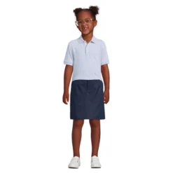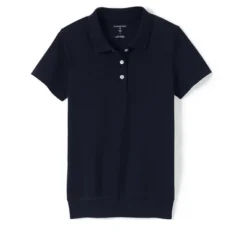Lands’ End School Uniform Girls Short Sleeve Button Front Peter Pan Collar Knit Shirt