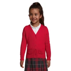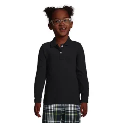 Lands’ End School Uniform Girls Long Sleeve Button Front Peter Pan Collar Knit Shirt