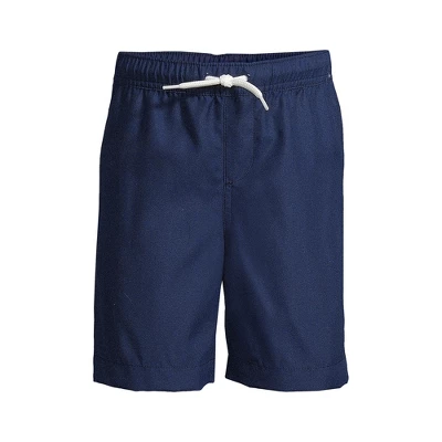 At Lands’ End we’re proud to believe every body is a beach body. And that goes for kids too! Fortunately little boys don’t usually need much to have fun in the sun. Just some sandals a fluffy towel a bucket and shovel…and our great volley swim trunks of course. Made from durable polyester fabric these swim bottoms block harmful UV rays and provide UPF 50 sun protection that doesn’t fade wash away or pollute the ocean. The amazing material is also quick drying (so he won’t get stuck in a soggy suit) and resists damage from chlorine. We’ve also added a faux fly back pocket with drainage grommets and a supportive mesh lining. The elastic waistband has plenty of stretch and the functional drawstring can be tightened or loosened as needed. Take these packable swim trunks along on your next family vacation. He can wear them when he’s splashing in the hotel pool playing in the surf or zipping down a water slide. And since they’re machine washable caring for them couldn’t be easier.