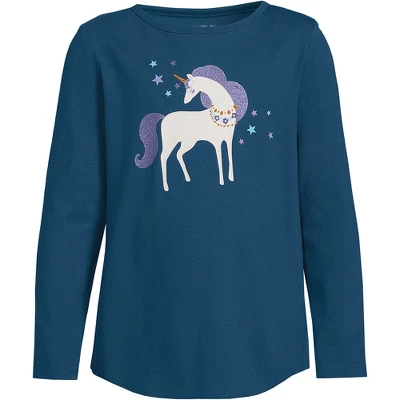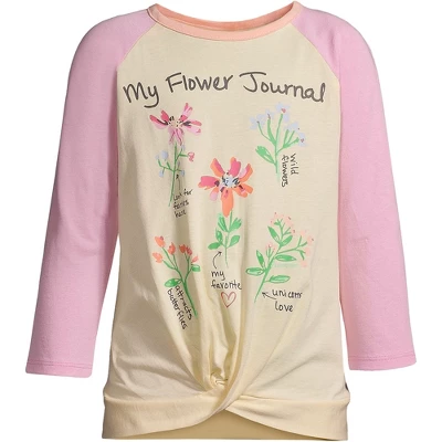 Our Little Girls Raglan Graphic Tee is designed for playtime and for parents who know how wild playtime can often be. The shoulders are durable and reinforced because who knows what kind of wear and tear kids’ shirts take when they’re running jumping cartwheeling and monkey bar dangling. 100% cotton and easy to wash. In fact it’s passed a 20 wash test so you know it won’t shrink in the laundry. That day 1 cozy softness will last no matter how many grass stains spills and mud your little girl comes up against.The patterns on these raglan baseball shirts are eye-popping and exciting calling on the adventurous spirit of your little one. The heat transfer back neck label is a no-fuss design for exactly that reason: no fussing about an itchy tag. Making your little girls’ shirts as comfortable as possible so that they can be as long lasting as possible is what makes this shirt the kind of quality that Lands’ End loves to offer.
