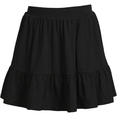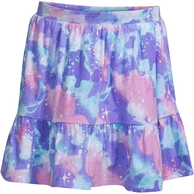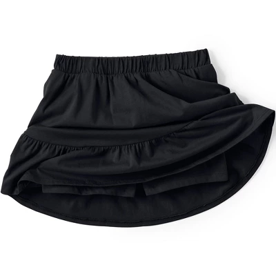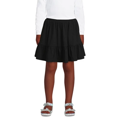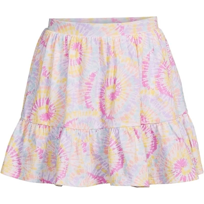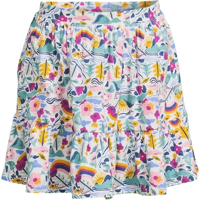 At Lands’ End we believe comfortable kids are happy kids. That’s why we select breathable stretchy fabric when designing our kids’ clothing. Our Little Girls Twirl Knit Skort is no exception. Made from breathable 100% cotton knit with just-enough-stretch and a comfy elastic waist these girls skorts are designed with her active lifestyle in mind. Whether she’s busy running jumping climbing or falling we’ve got her covered. The mid-thigh 2.75 inseam shorts underneath fit snug on her leg and won’t ride up when she’s playing and will keep her modestly covered when she shows off on the playground doing cartwheels or playing on the monkey bars. And the cute gathered bottom ruffle tier offers a dressier option than leggings joggers or jeans when you need her to dress up but want her to be comfortable. Perfect outfit choice for the first day of school picture day a special day out with mom or dad or even just playing in the backyard. Available in fun novelty prints like hearts tie dye rainbow polka dot plus solid black and navy there’s sure to be a girls twirl knit skort fit for your little lady’s unique style. Plus the classic navy and black options can provide comfy alternatives to traditional school uniform skirts. Offered in Little Kid Plus Size and Big Girl sizes. Lands’ End sizing is as follows: Toddler 2T-4T Little Kid 4-7 6x Big Girl 7-16 Big Boys 8-20; Consult sizing chart for their true size fit.