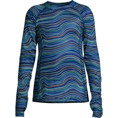 At Lands’ End we believe comfortable kids are happy kids. That’s why we select breathable stretchy fabrics when designing our kids’ clothes for your active girls and boys. The Girls Thermal Base Layer Long Underwear Thermaskin Crew Neck Shirt is no exception. A quality spandex-blend base layer shirt designed with stretch and flexibility for all their big adventures outdoors during tumultuous winter temps so they can enjoy their snow days to the max. With a moisture-wicking finish we ensure this high-performance underwear shirt will keep her warm dry and comfortable through all of those winter activities. Classic crew neck convenient thumb holes and chafe eliminating flatlock stitching ensure she’ll be comfortable slipping into a little extra warmth in the morning. Don’t worry the Thermaskin ™ heat technology will ensure that body heat stays close to her body. It can even absorb her body moisture and turn it into heat. How about that?!