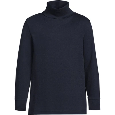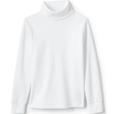 At Lands’ End we believe comfortable kids are happy kids. That’s why we select breathable stretchy fabrics when designing our kids’ clothing. Our School Uniform Little Kids Turtleneck is no exception. Made from all-cotton interlock knit with a cotton/spandex blend cuff this turtleneck is designed to keep your kids cozy warm and comfortable through their busy day. Soft and smooth cotton feels good on their skin and the spandex blend cuff made from 95% cotton/5% spandex pushes up easily and stays in place on their arm so long sleeves won’t inch down and bug them when they need to wash those hands (or get them dirty). Plus the fabric won’t shrink out of fit after a wash a feature you need in an everyday wear item and school uniform attire. Thick and warm fabric will keep them cozy on cold winter days and brisk fall afternoons. Layers well under sweater vest uniform sweaters zip up jackets fleece hoodies sweatshirts pull over sweaters and winter coats. Available in solid colors perfect school uniform wear matching Christmas attire and for dressy events like holidays plays and performances. Offered in a variety of regular sizes. Lands’ End sizing is as follows: Toddler 2T-4T Little Girl size 4-6x Big girl size 7-16 Big Kid size 8-20; Lands’ End kids clothing are designed to last year after year kid after well-dressed kid. Consult the sizing chart for your true size fit.