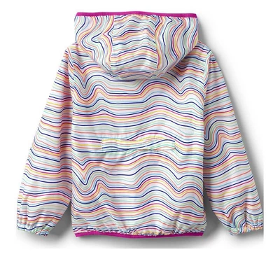 Gray skies and clouds are nothing to fear when this amazing Lands’ End coat is hanging in your closet. The rugged windproof and waterproof shell will protect your child all year long without adding weight whether it’s from the wet weather that arrives in the fall chilly spring showers or even a summer downpour.Since this coat packs into its own rip & grip pocket it’s easy to take with you anywhere. Stuff it into a backpack suitcase or even the glove compartment in your car and you’ll always be prepared and never caught off guard. We’ve also added elasticated cuffs and welt pockets on the front so your little one will have a place to keep their hands warm.When it’s coming down hard outside pair this coat with rain pants and rubber boots to keep them totally dry in a way that a puffer or trench can’t match. Since it’s fully seam-sealed nothing will get through and you won’t have to stress about your child coming home soaked and shivering.