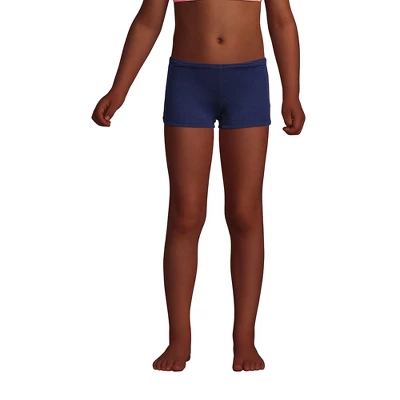 Every little girl has a mermaid inside of her yearning to break free! There’s something about kids and water – they love swimming splashing and playing in the surf. Of course they need durable comfy swimwear to really enjoy themselves and that’s where Lands’ End comes in. Our soft and stretchy Girls Boy Short Swim Bottoms are just what she needs. The innovative fabric dries quickly so she won’t have to sit around in a cold soggy suit. It also provides UPF 50 sun protection – the highest you can get – to help prevent burns when’s having fun outdoors. They have a modest cut and a tugless design that keeps them in place even when she’s turning cartwheels in the sprinklers. And they’re fully lined as well so they won’t turn see-through the moment she dives into the deep end. Best of all you can mix and match these swim shorts with a bikini or tankini top a cute halter a swim shirt and almost anything else. That way you can rest assured everything fits perfectly even if she needs different sizes on top and bottom.