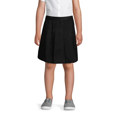 Classic pleats in our easy-care blend fabric that resists stains, wrinkles and fading so she looks A all school day long. Top-of-knee length.