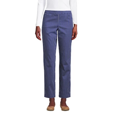 Our Lands’ End Women’s Plus Size Mid Rise Pull On Chino Ankle Pants are the perfect example of stylish comfort. Cute comfortable stretchy and stylish you can wear these pants from morning until night and never suffer an ounce of discomfort. Made from a crisp cotton twill with just a hint of stretch and a covered elastic waistband these pants offer that stretchy mobility you need to fit just right so they feel and look amazing. The breathable nature of cotton also keeps you cool and comfortable when you work or play indoors or outside. But the best part? They present like dress pants thanks to the finished hem onseam pockets back welt pockets and faux zip fly. But they are still comfy enough to lounge in. You can truly consider these work pants weekend wear appropriate. How about that?! Set yourself up for a cute and comfortable day and wear them with dress shirts blazers suit jackets cardigan sweaters or a basic cotton tshirt or button-down shirt for a run to the store. Add some sandals heels or slip-ons and you’ll have a completely stylish outfit in minutes. Women’s Mid Rise Pull On Chino Ankle Pants are available in a variety of solid colors and prints. Regular petite tall and plus size pants available. Lands’ End shifts proportions and makes fabric adjustments for quality plus size pieces. For a more relaxed fit consider ordering one size larger. Ankle length inseam is 26 inches. Plus size pull-on Chino pants start at 16 Plus to 26 plus. Tall sizes available from size 6 Tall to size 18 Tall. Regular sizes begin at size 2 to size 14. Petite sizes available from size 2 to size 18 petite. Sizes are based according to body measurements. Consult the sizing chart for your true size fit.