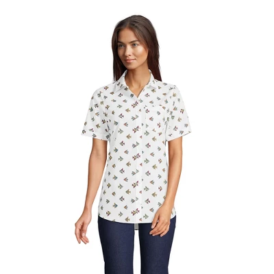 The ease and reliability of our no iron shirt in a unique style with a slight retro nod. Reach for this top on days when you want something a little less traditional (without any added ironing). The slit neck with hidden button placket and rounded hem pair with a great pair of slim pants and your favorite flats for a standout look.