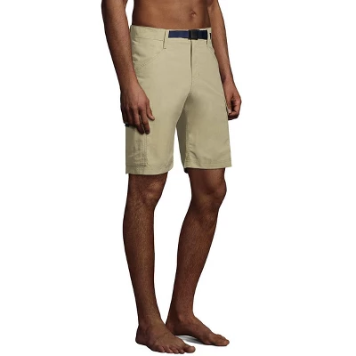 At Lands’ End we believe every body is a beach body. All you need to have fun in the water is swimwear that looks good and feels great and these Men’s 9″ Outrigger Quick Dry Cargo Swim Trunks with No Liner are a great place to start. Made from an innovative chlorine-resistant fabric they have a durable water repellent finish that means they dry in a snap so you can go from the pool to the barbecue in moments. The material also provides UPF 50 sun protection – the highest you can get – to keep you safe from burns. These swim trunks even have room to safely stash your odds and ends. They come with a hidden cell phone pocket two zip cargo pockets two zip back pockets and a coin pocket. There’s also a functional zipper fly for bathroom breaks and a stretchy adjustable elastic waistband with a button closure. Try them with a swim shirt when you’re spending a day at the beach or resort pool. You’ll look good feel comfortable and won’t end up red as a lobster by the time the sun goes down.