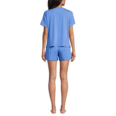 Slip into sleep with our cooling two-piece set. These breathable pajamas will keep you comfortable with moisture-wicking properties, making the fabric feel cooler. The flowy set starts with a pullover tee with a patch pocket. And the shorts feature an adjustable waist band and two handy on-seam side pockets.