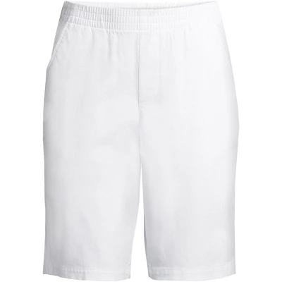 Our Lands’ End Women’s Plus Size Mid Rise Elastic Waist Pull On 12” Chino Bermuda Shorts are the perfect example of stylish comfort. Cute comfortable stretchy and stylish you can wear these shorts from morning until night and never suffer an ounce of discomfort. Made from a quality cotton-blend with just a hint of stretch and a covered elastic waistband these pants offer that stretchy mobility you need to fit just right so they feel and look amazing. The breathable nature of cotton also keeps you cool and comfortable when you work or play indoors or outside. But the best part? They present like a dressy pair of shorts thanks to the Front hip pockets back welt pockets and neatly stitched faux zip fly. But don’t worry they are still comfy enough to lounge in. Exactly what you want in a great pair of shorts right? Wear them with tunic tops dress blouse blazers suit jackets cardigan sweaters sleeveless shirts or a basic cotton tshirt or button-down shirt for a run to the store or a fun day around town. Add some sandals heels or slip-on boat shoes and you’ll have a complete stylish outfit in minutes. Women’s Plus Size Mid Rise Elastic Waist Pull On 12 Inch Chino Bermuda Shorts are available in a variety of colors and prints. Plus sizes start at size 16 plus petite plus size 16 and 18 available. Lands’ End adjusts measurement and proportions on plus size items to ensure the best fit possible. Consult the sizing chart for your true size fit.