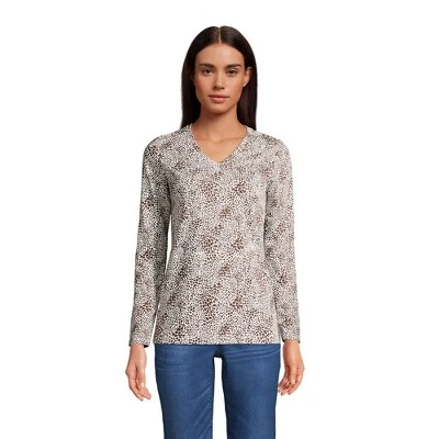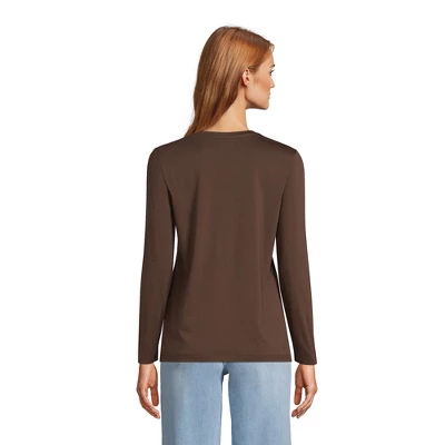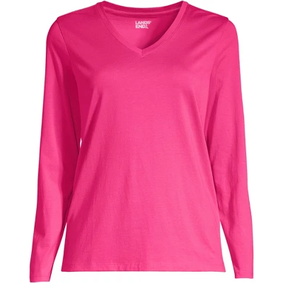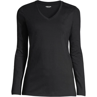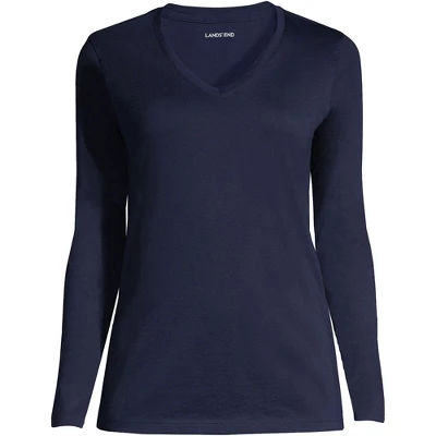 Looking for that new favorite top you can wear just about anywhere all year long? Look no further than the Lands’ End Women’s Relaxed Supima Cotton Long Sleeve V-neck T-shirt. Offered in extended sizes Lands’ End dresses women in the clothing they need to look and feel their best day after day. Made from ultra-soft Supima cotton this shirt is light never bulky and breathable enough to layer under sweaters jackets and fleece but thin enough to wear over turtlenecks and tank tops. Those soft supima fibers also feel smoother take dye better and last longer than any regular shirt you’d pick out at the store. To sum up: this stylish V neck tee looks great under cardigans scrubs or other clothing like opened button-downed shirts. It’s also made to sustain wash after machine wash so you can wear this top all year long without worrying about stiffness or fading. Lands’ End creates clothing to fit every body and ensures quality timeless outfits for years to come.