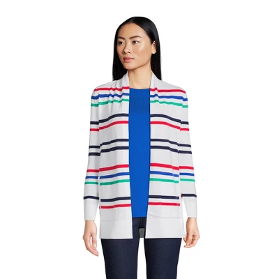 Every woman needs a sweater like this or maybe two! Made from soft breathable cotton it looks good with almost everything. Try it with a silk camisole a cute lace-trimmed tee or your favorite sun dress. The open front styling is the essence of understated simplicity and it moves from season to season effortlessly. You’ll find yourself reaching for this cardigan in fall and winter but it’s also wonderful in spring and summer especially on those cool days when you need something light close at hand. The draping fit is flattering on every body type and it’s a smart choice for any professional wardrobe as it can easily take the place of a suit jacket. The rib knit trim keeps its shape wash after wash and there are two pockets where you can slip a pack of gum a tube of lip balm or anything else you need. Order it in several colors and you’ll always have something to layer up in. Take it along on your next trip and you’ll have something to wear on a chilly plane or in a mall where the AC is cranked up. In the evening slip it on over a dress and you’ll be ready for a nice dinner with your special someone.