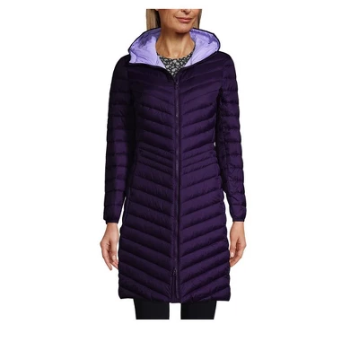 Let the Lands’ End Women’s Ultralight Packable Down Jacket keep you warm and in style this winter! Ultralight and super warm you’ll be thankful you have this packable puffer in your bag of tricks this fall and winter. Designed with a water-resistant nylon shell and 800 fill power down this womens winter coat will protect you from whatever life throws at you this season. Whether it’s freezing rain or a blinding snowstorm this hooded Ultralight packable down jacket will let you emerge victorious – and dry and warm – without ever ruffling your feathers (thanks to the antistatic thread that keeps the down in place). And while this jacket can keep you warm from head to mid-hip length wherever covered we can’t really do much about that rosy pink glow you get in your cheeks when you’re enjoying that winter wonderland lifestyle. But that’s not so bad is it? Available in multiple colors stylish patterns and various sizes. Consult the sizing chart for additional help in finding that perfect fit. Lands’ End has been making timeless classics since 1963 and continues to deliver quality comfortable coats designed to fit every body. Get going today.