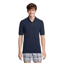 Lands’ End Men’s Short Sleeve Comfort First Solid Mesh Polo With Pocket