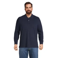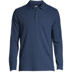 Lands’ End Men’s Long Sleeve Super Soft Supima Polo Shirt With Pocket