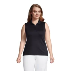 Lands’ End Women’s Short Sleeve Mesh Cotton Knee Length Polo Dress