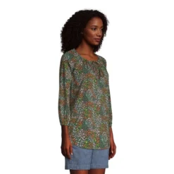 Lands’ End Women’s 3/4 Sleeve Light Weight Jersey Ruffle Neck Pintuck Top