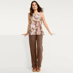Lands’ End Women’s Knit Crinkle Knit Button Front Tank – Small – Light Blue Radiance Check